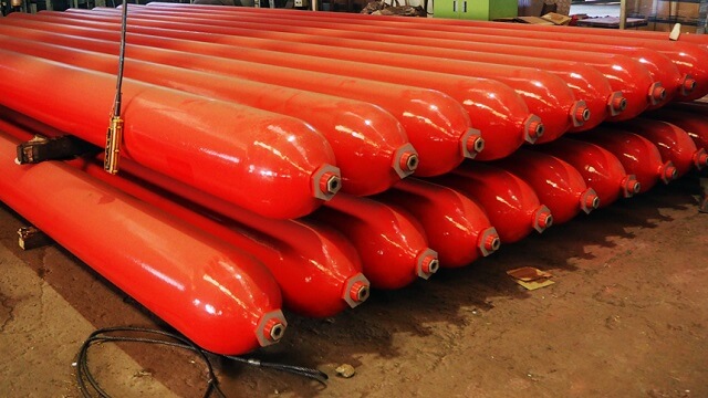 天然ガス自動車(CNGV)に搭載の燃料装置用容器です。鋼製継目なし容器です。
