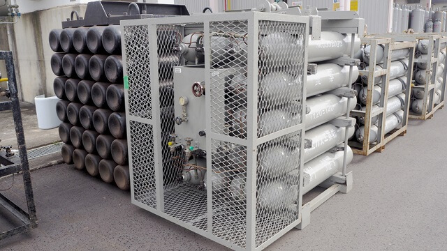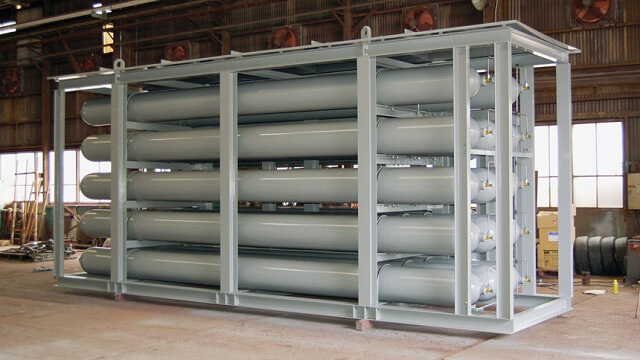 中容器や設備用蓄圧器を集結するための架台です。配管を含め製作可能です。